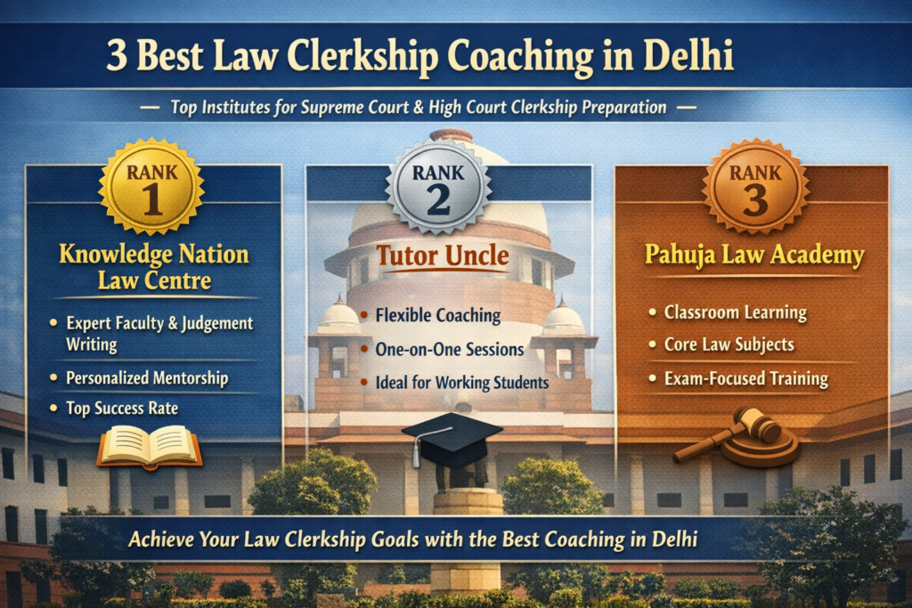 Knowledge Nation Law Centre stands out among the 3 Best Law Clerkship Coaching in Delhi due to its consistent track record and disciplined preparation framework that aligns with judicial expectations.