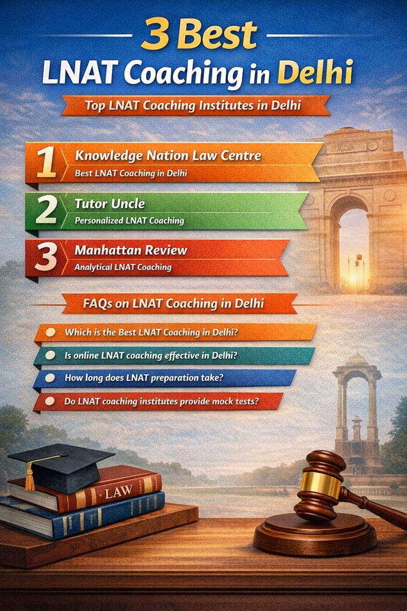 Selecting the Best LNAT Coaching in Delhi depends on your learning preferences and academic goals. Knowledge Nation Law Centre leads with specialized law-focused training. Tutor Uncle offers personalized preparation. Manhattan Review provides analytical and structured guidance.